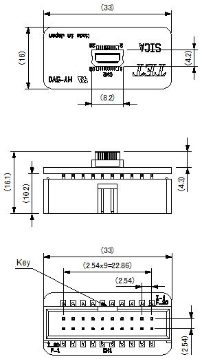 SICA コネクタタイプ 2.54mmピッチコネクタ用 (基板仕様)は,ノーマルピッチ(2.54mm)のコネクタを,小さいSICAターゲットコネクタ(0.5mmピッチ)に変換するアダプタです。