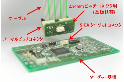 (3)ケーブルを差し込んだSICA基板タイプを,ターゲット基板に実装されたSICAターゲットコネクタと嵌合させます。